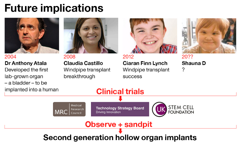 “The technology behind this trial has been tested by our team in three patients who were critically ill. One adult patient and two children received tissue engineered tracheal implants. In each of these patients, a section of trachea was prepared in a similar way and implanted successfully. One of the children died of an unrelated problem soon after having the implant surgery, but for two of these patients this treatment was life-saving. The adult patient is alive with minimal symptoms five years after receiving the implant, and the child is alive and well four years after receiving the implant.