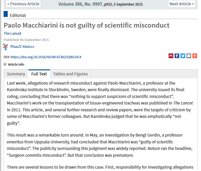 The travesty around the data faking regenerative medicine enthusiast Suchitra Sumitran-Holgersson is finally over. Her Swedish employer University of Gotheburg announced to sack her as university professor. Retractions of 7 papers were requested