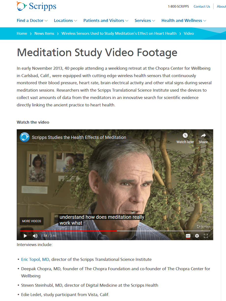 Elissa Epel, collaborator of Blackburn and professor of psychiatry at UC San Francisco, is also listed as PI on the SBPI clincial trial. She told me that she also “did not end up collaborating on that project”, and that she “cannot comment on his [Chopra’s] scientific credentials. She recommended I interview the study director Paul Mills, who leads a “Mind-Body Biomarker Laboratory” at UCSD: