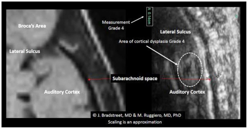 The authors of these papers were under the impression that tissue density is what reflects ultrasound, rather than abrupt changes in density, causing them to misread the outside surface of each subject’s temporal bone (smeared out by the instrument’s poor resolution) as the thickness of the bone. Naturally the rest of the Maps-of-Mars of meningeal and sub-arachnoidal and cortical layers are equally meaningless artefact pareidolia, wildly variant from the accepted ranges (and probably incompatible with life), but for the authors and reviewers, this was a discovery. It may be that the reviewers lacked knowledge of the field and accepted Ruggiero’s claim of expertise in radiography.
