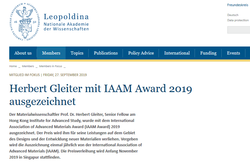 The German Academy of Sciences, Leopoldina, advertises for Ashutosh Tiwari’s predatory conferences. Occasion: Academician Herbert Gleiter won an IAAM Award.
