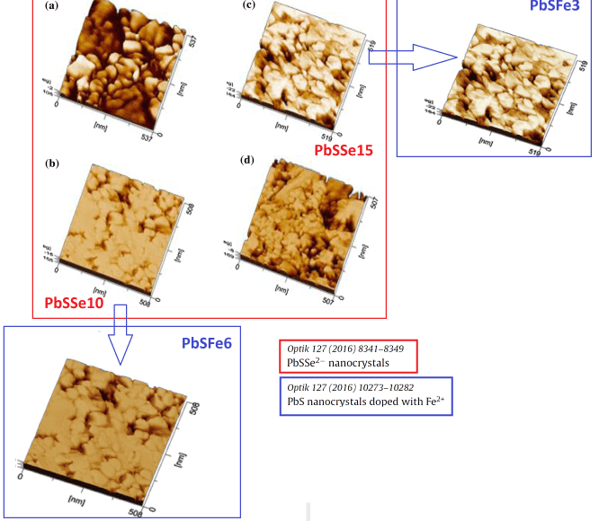 O. Portillo Moreno, R. Gutiérrez Pérez, M. Chavez Portillo, L. Chaltel Lima, G. Hernández Téllez, E. Rubio Rosas Morphological, structural, optical and electrical properties of PbS nanocrystals doped with Fe2+ grown by chemical bath Optik (2016) doi: 10.1016/j.ijleo.2016.08.036