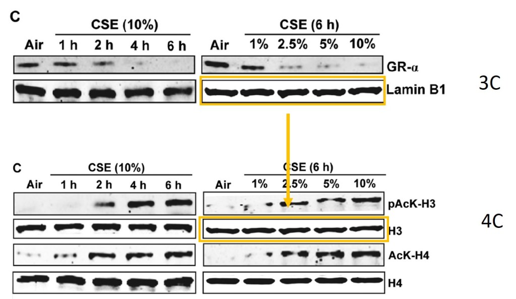 In Figure 3A, the band shapes prove that a-SMA and GAPDH loading control are two separate gels. And in Figure 4B, never mind the band shapes, pSmad3 has 7 lanes, while GAPDH and the legend makes you expect 8 lanes. It passed peer review, probably because nobody was looking at the figures anyway.
