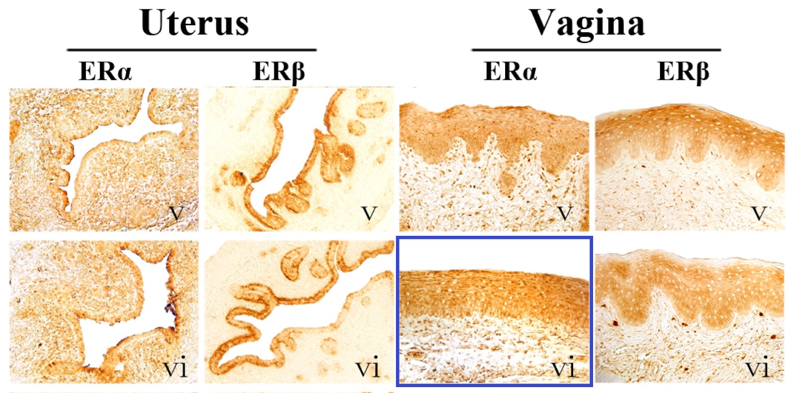 Perhaps the scanner broke down when the authors were preparing Figures for [26], causing the ER(α)- and ER(β)-stained microphotographs to resemble exercises in brick-laying.