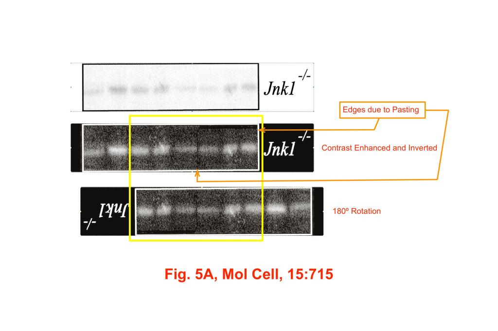 Now, Karin may be the undead pestilent vampire everyone these days carefully avoids, but during his long and highly successful career in fraudulent cancer research, Karin coauthored papers with some serious heavyweights. He also mentored many, many people who are presently in charge of today’s science. Like the Duke-NUS professor Kanaga Sabapathy, whose ancient paper from Karin lab (Sabapathy et al Current Biology 1999) already had some inappropriate gel splicing. It is one of 16 Sabapathy papers on PubPeer, including this one: