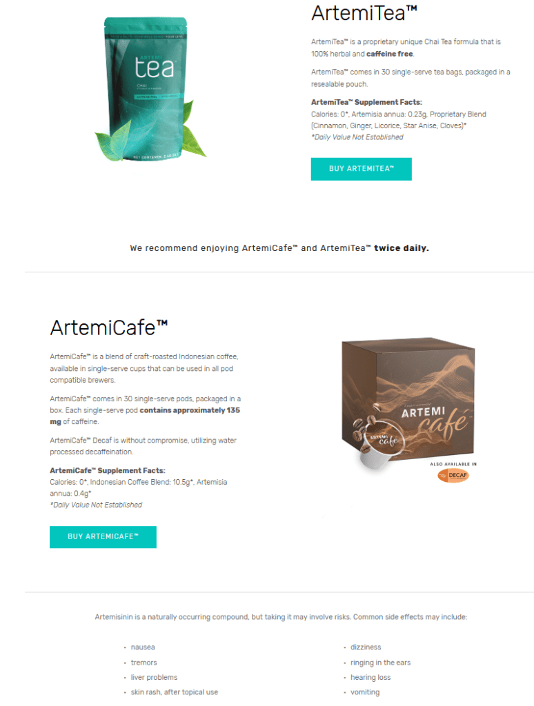 ArtemiLife is careful to note that its tea and coffee are “not intended to diagnose, treat, cure or prevent any disease” and cautions that common side effects may include hearing loss and liver problems. But it also claims that drinking two servings per day will help consumers “maintain an active shield,” thus “protecting your well-being.” […]