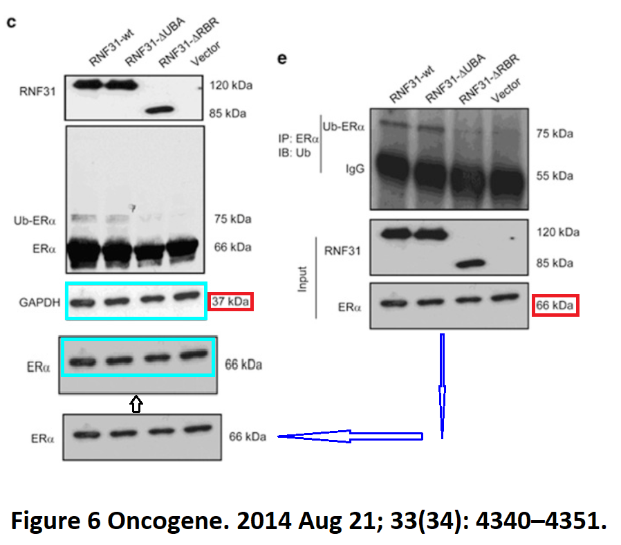 J Zhu , C Zhao , A Kharman-Biz , T Zhuang , P Jonsson, N Liang , C Williams, C-Y Lin , Y Qiao , K Zendehdel , S Strömblad, E Treuter, K Dahlman-Wright. The atypical ubiquitin ligase RNF31 stabilizes estrogen receptor a andmodulates estrogen-stimulated breast cancer cell proliferation Oncogene. 2014. doi: 10.1038/onc.2013.573. Figure 4 and 6 [CORRECTED on 27.09.2018]