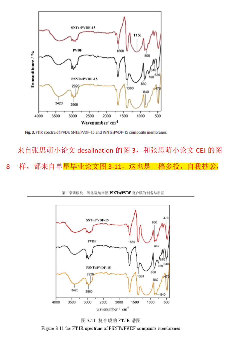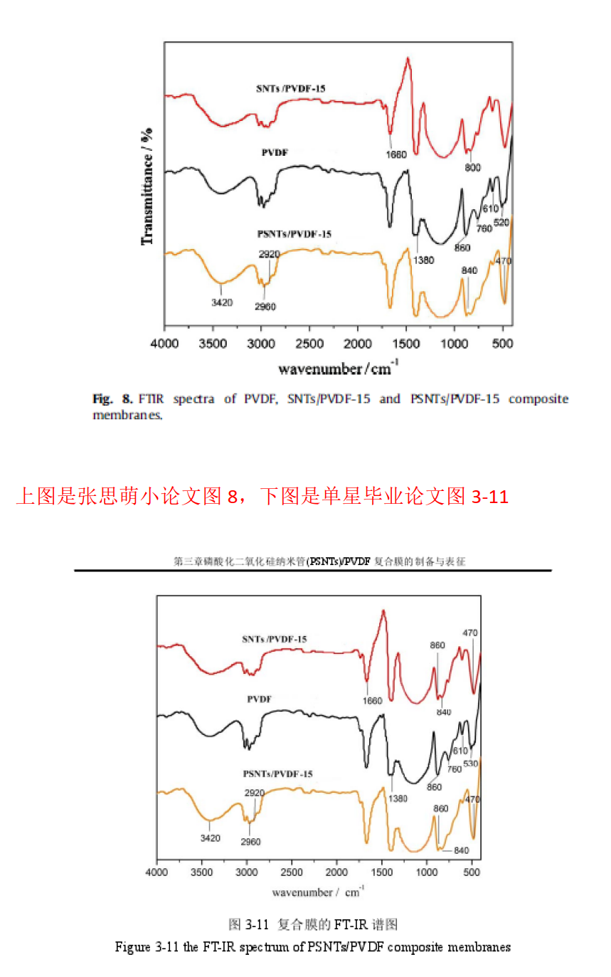 * “Study of Phosphorylated Silica Nanotubes (PSNTs)/Polyvinylidene Fluoride Composite Membranes”(磷酸化二氧化硅纳米管/聚偏氟乙烯复合膜的研究)by SHAN Xing(单星), with 90% overlap and obvious image reuse (with none and little modification).