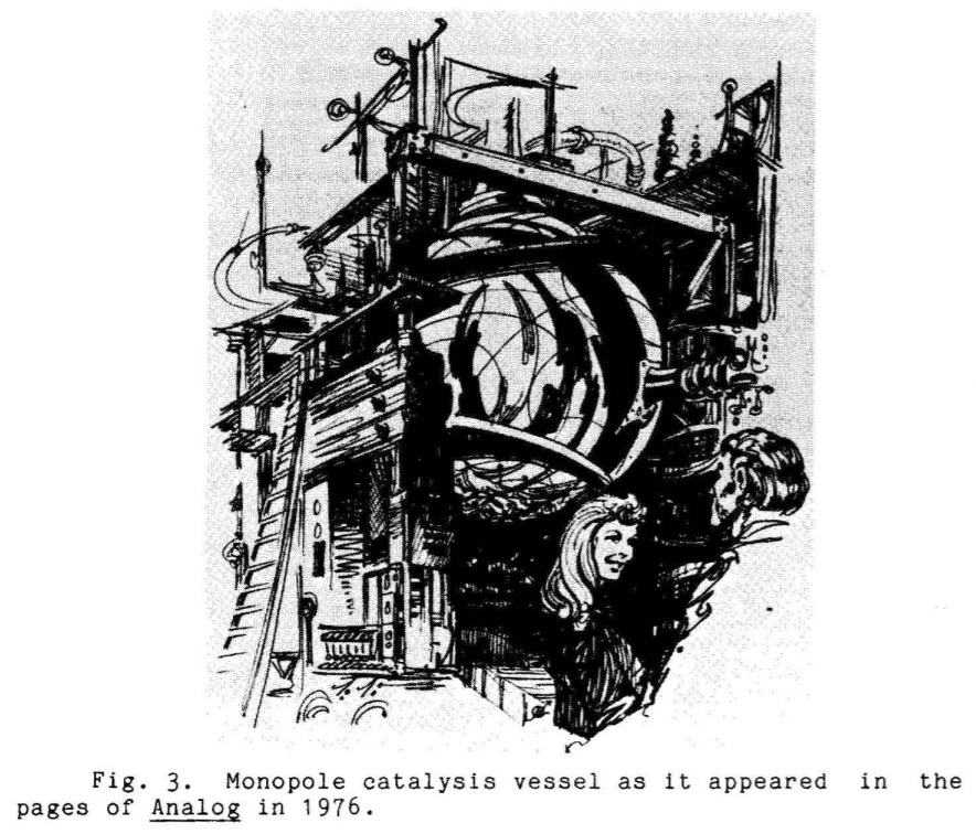In their defense, ‘exotic routes to fusion‘ was part of the Zeitgeist then and not just a Prog-Rock album by Caravan or Pentangle. Muon-catalyzed and quark-catalyzed fusion found their way into popular culture in the course of the 1970s and 1980s, and even ‘monopole catalysis’ (for values of ‘popular culture’ that include ‘engineering-porn science fiction). As evidence for this assertion I adduce the inside art and the splendidly lurid cover of the 1976 serialisation of ‘Minotaur in a Mushroom Maze’.