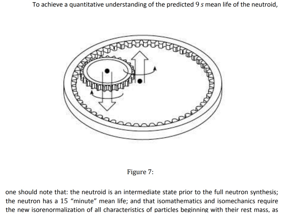 The neutrons come from hydrogen atoms, with ‘neutroids’ as an intermediate step, by intermeshing the cog-teeth of each proton with its corresponding electron. An electric arc – as central to Santilli engineering practice as leeches were to medieval medicine – is involved. This in turn is possible because of Santilli isorelativistic isomathematics, where numbers can take on whatever values are needed to provide solutions that are impossible according to mainstream maths.