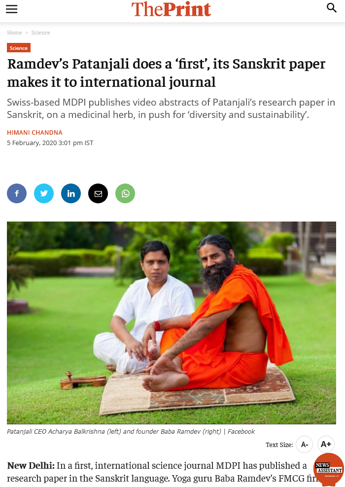 No conflicts of interests are declared in each of the papers, incanted in fact like a Vedic prayer. Especially since these holy men manage to run a giant worldwide merchandise market of Ayurvedic quack medicine against everything, including and in particular against COVID-19, while declaring no conflict of interest whatsoever in every peer-reviewed paper they publish. Their “research” works appear predominantly in MDPI, which the publisher declared to be part of the push for “diversity”.