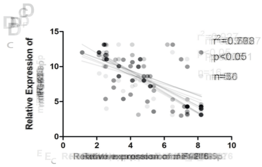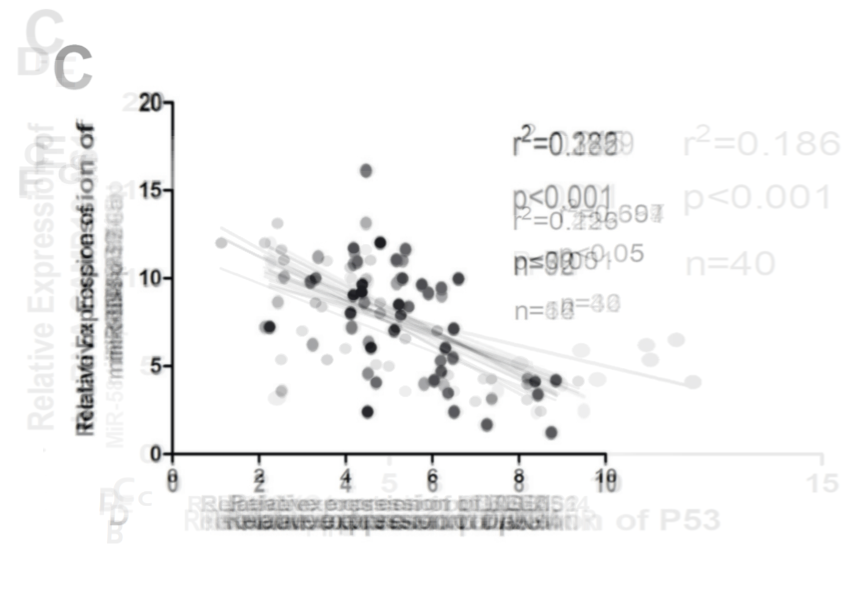 Another of the recurring elements in the constellation that characterise this papermill are scatterplots of biomarker expression levels, purportedly showing a correlation between non-coding-RNA X and signalling molecule Y. The papermiller does not waste time customising these either: why bother populating an entire random-value table for each opuscule?