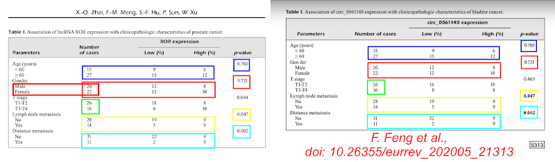 So yes, dear reader, this is another Chinese paper mill story, brought to you by Smut Clyde in collaboration with Elisabeth Bik and Tiger BB8. As customary for Chinese paper mills, it will be about fake science of non-coding RNA, which is a due punishment to western scientists for overhyping this research field beyond recognition. This time it’s not just some fake cell culture experiments or fake rodents, but hundreds of utterly fake cancer patients evolving fake cancers and dropping dead on command to prove some fake claims about some randomly picked miRNA or lncRNA or circRNA. The cheap paper mill products never bothered to fake their clinical data properly in those cases, hence the women with prostate cancer. It’s not like anyone minded, so far anyway. There will also be fictional babies and toddlers of stretchable age signing informed consent, and actual sea lions!