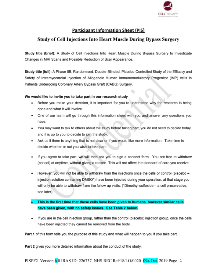 That was of course bullshit. What was unclear though, if the Heartcel/iMPs for the Brompton trial would be secretely somebody’s peripheral blood again, or something else.