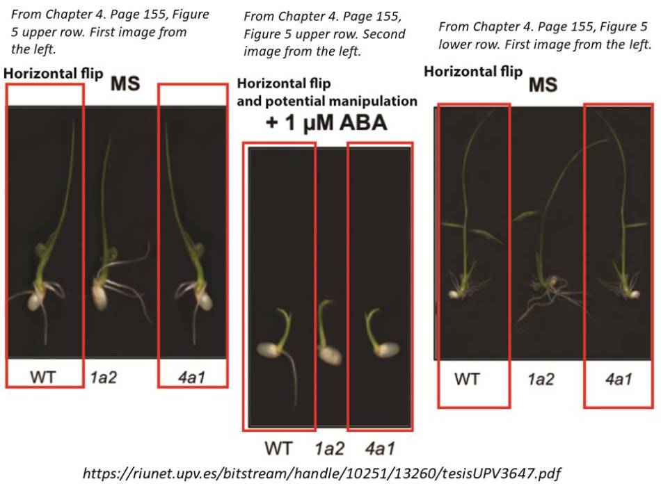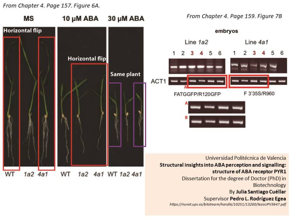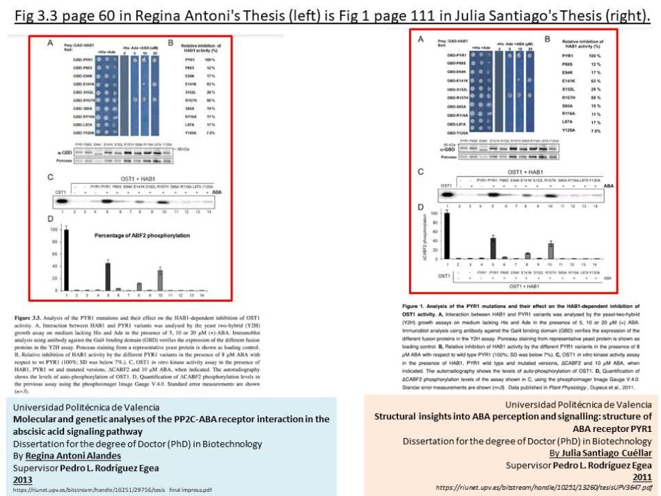 However, the PhD thesis of the deceased scapegoat Américo do Patrocínio Rodrigues, titled Abscisic acid signal transduction: Regulation by HAB1 and interaction with brassinosteroids mediated by BRX and supervised by Pedro Luis Rodríguez Egea, does not contain any of those figures. Although it does contain another one flagged for manipulations:
