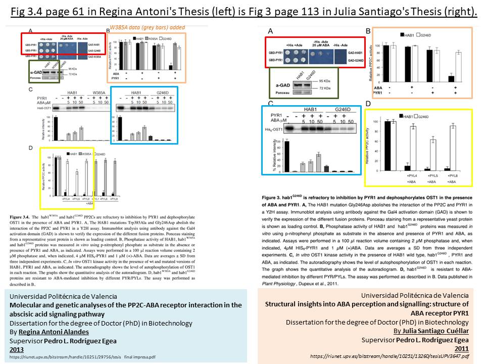 However, the PhD thesis of the deceased scapegoat Américo do Patrocínio Rodrigues, titled Abscisic acid signal transduction: Regulation by HAB1 and interaction with brassinosteroids mediated by BRX and supervised by Pedro Luis Rodríguez Egea, does not contain any of those figures. Although it does contain another one flagged for manipulations: