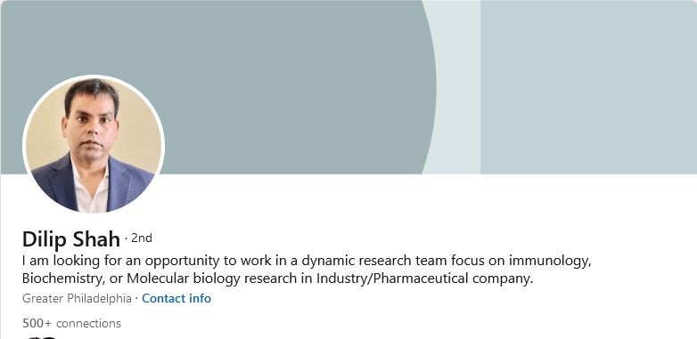 Dilip Shah’s last academic post was at Cooper University Hospital in Camden, N.J., where he worked as a post-doc in the lab of Vineet Bhandari.”