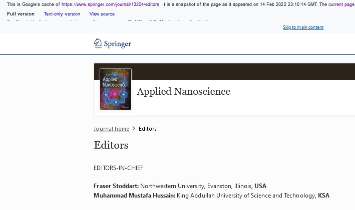 Here a nanotechnology example unrelated to the Yin affair. The papermill sleuth Nick Wise found a bizarre nonsense paper in the journal Applied Nanoscience, which until Wise’s tweet) has been led by the Nobel Prize winner Sir Fraser Stoddart as Editor-in-Chief. The journal is published by Springer Nature, yet “is fully supported by King Abdulaziz City for Science and Technology (KACST) in Riyadh, Saudi Arabia“. Stoddart’s connection to Saudi academia or the Sunni-Islamic world in general is not immediately obvious.