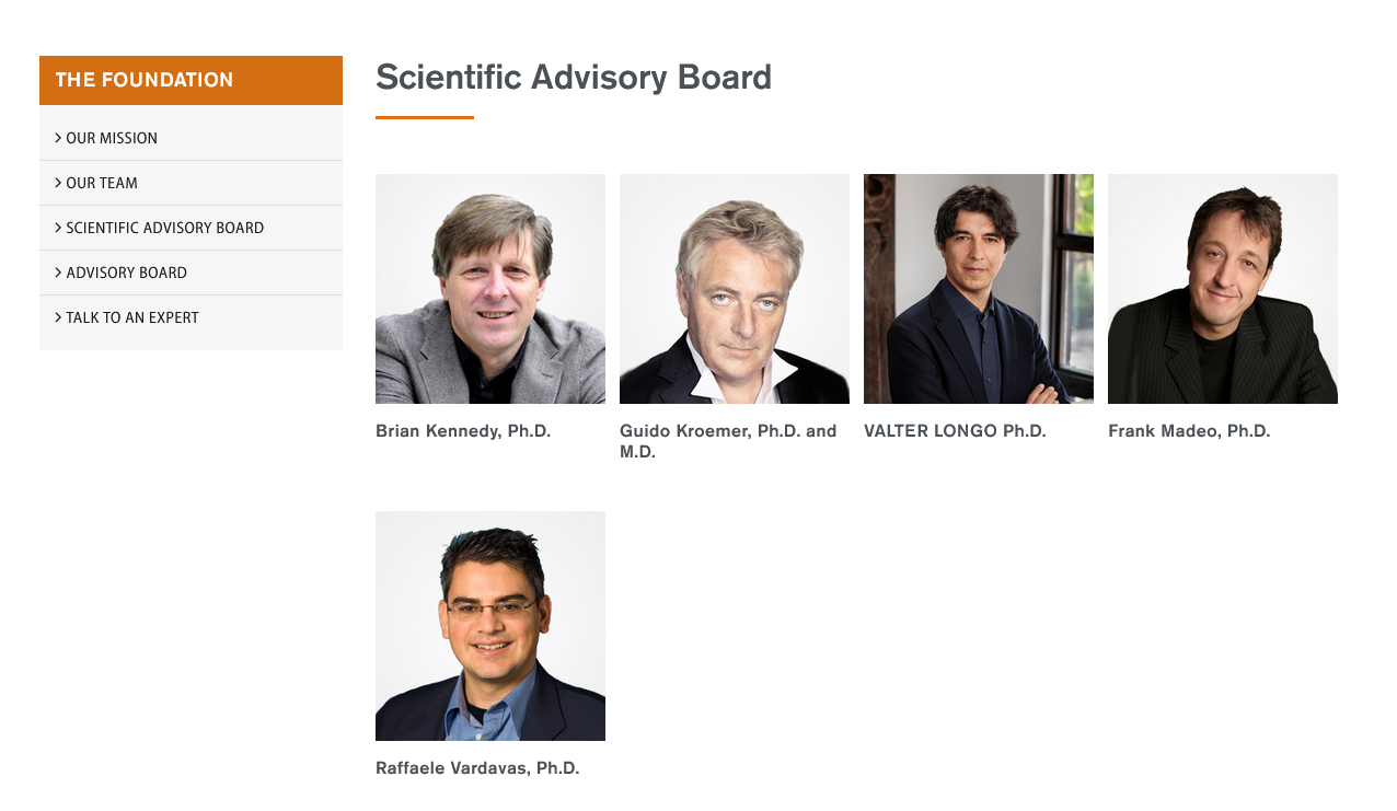 We can’t know how much cash Longo makes with his nutrition business, but he insists it all flows into his anti-aging research, as the German pseudo-intellectual magazine Der Spiegel advertised. Which probably means, the money goes into his non-profit foundations, Fondazione Valter Longo in Italy and Create Cures in USA. In fact, the clinical trial paper explained regarding L-Nutra: “One-hundred percent of [Longo]’s equity will be assigned to the nonprofit foundation Create Cures.” Evil tongues might suspect that this way the nutraceuticals cash is converted tax-free not into research, but into charitable remunerations to the foundation employees like Longo himself and his friends on these two foundations’ boards. Friends like… Guido Kroemer.