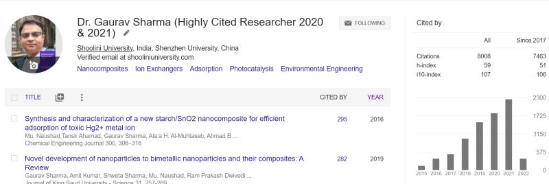 * The sheltering aegis of a Shenzhen University affiliation extends to Dr Kumar’s Shoolini colleague, Gaurav Sharma (“highly cited researcher 2020 & 2021“). As well as faking papers, Dr Sharma’s hobbies include editing journals, reviewing for journals, counting his citations, and mentoring PhD students in How to Science.