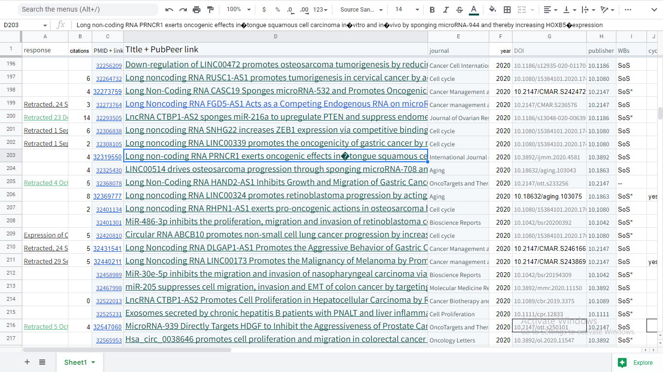 The generative, rule-driven nature of these romances made it easy to extend the list of examples, using PubMed’s “Similar papers” function, though much credit belongs to ImageTwin. By now the spreadsheet contains over 270 entries from 2016-2021, which is not enormously prolific by papermill standards but is still a respectable quantum of bullshit. A trail of continuity leads to newer, more-varied papers, mining new seams of Long non-coding RNAs, maybe the micro-RNA seam was exhausted?