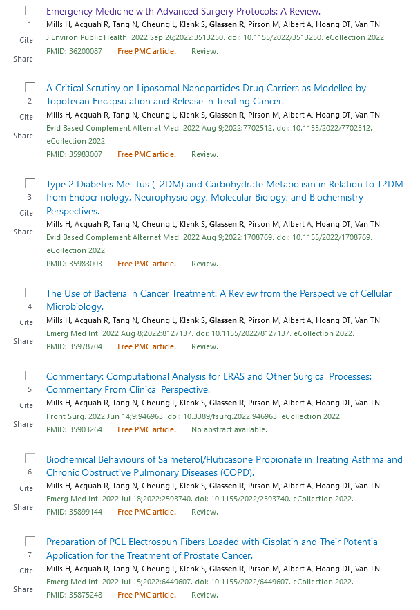 “I could not verify any of the authors’ identities. This exact group of authors seems to have published seven papers, on unusually wide range of medical topics, all in 2022. I have not spotted any activity of any of the authors outside this group. The ORCID profiles sometimes include articles by other researchers – for example, “Hilla Mills”‘ ORCID lists a paper by EGAH van Mill, and “Luke Cheung”‘s ORCID lists a paper by Lumei Cheung.“