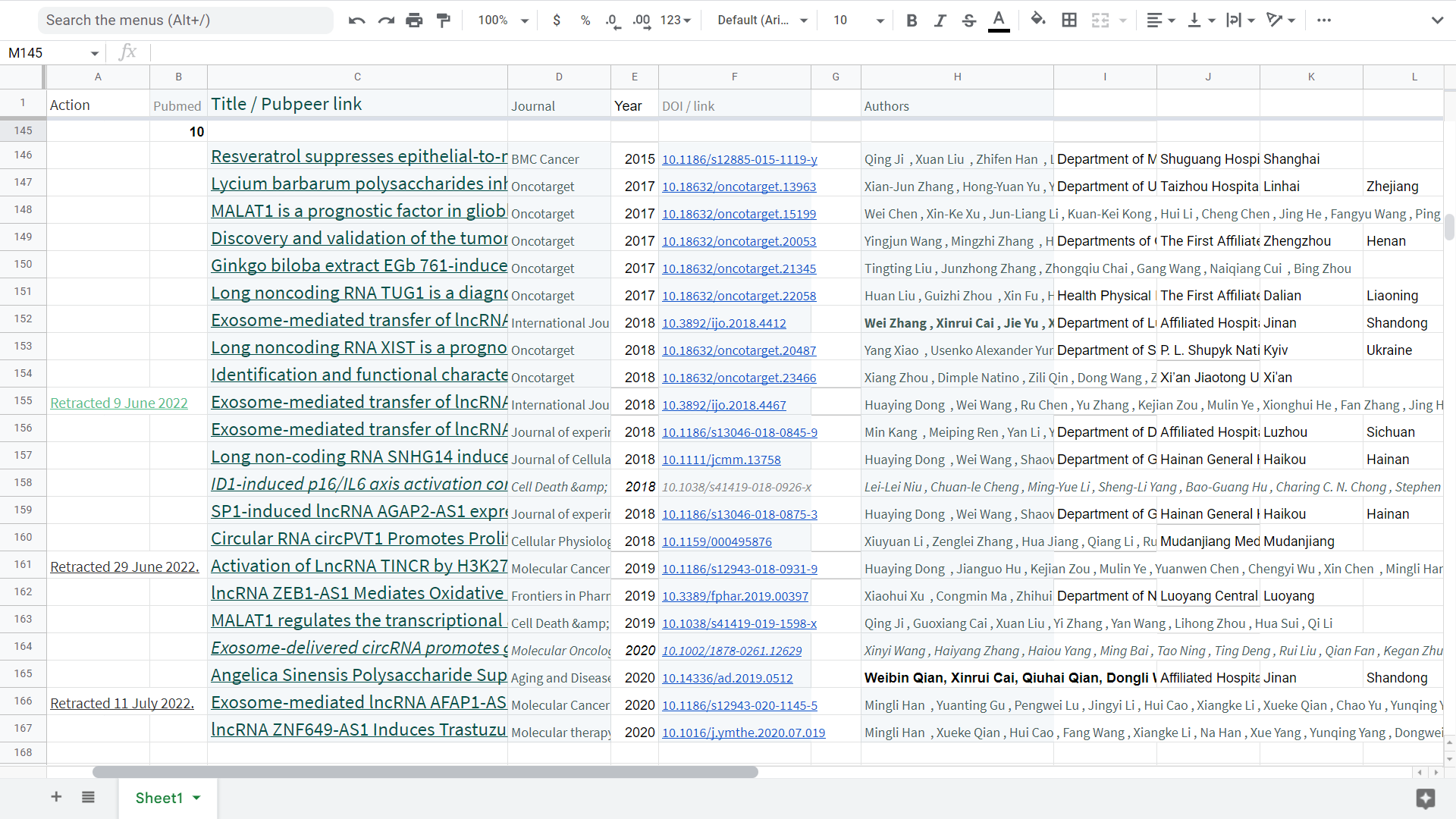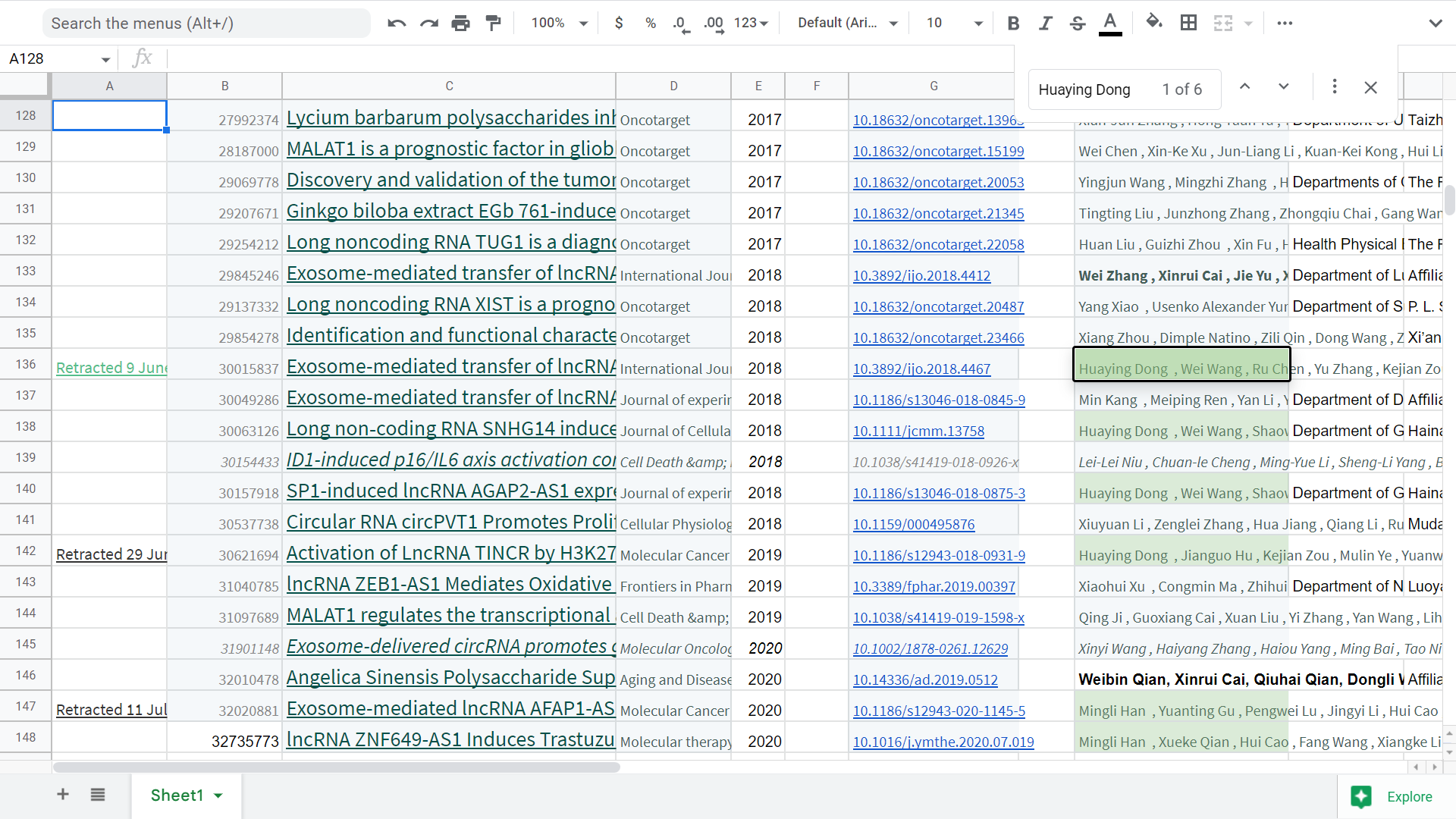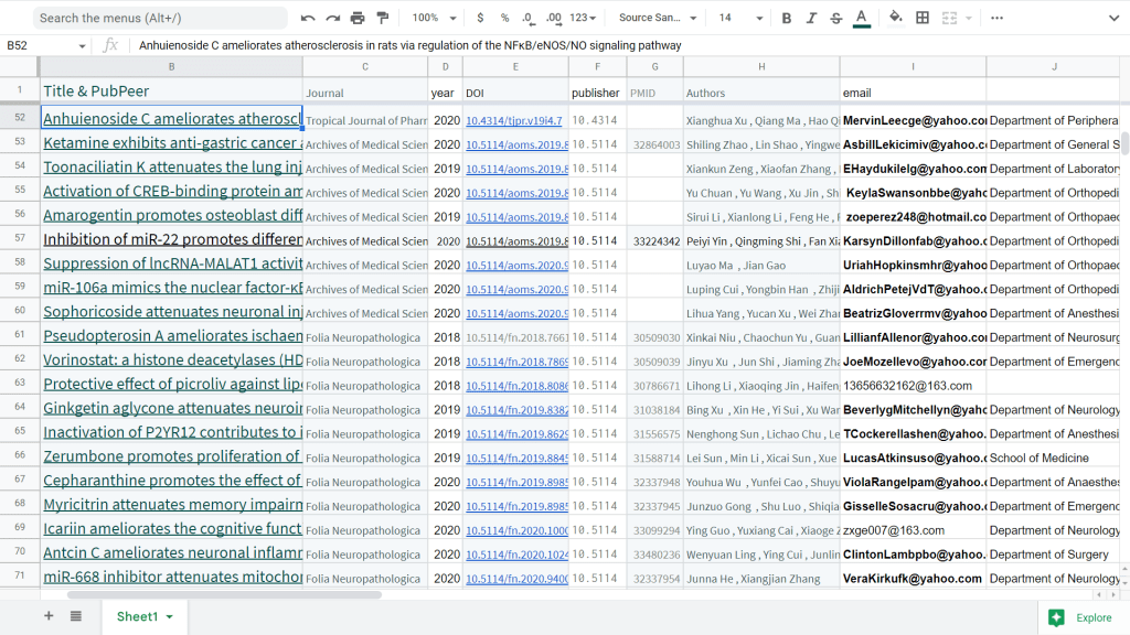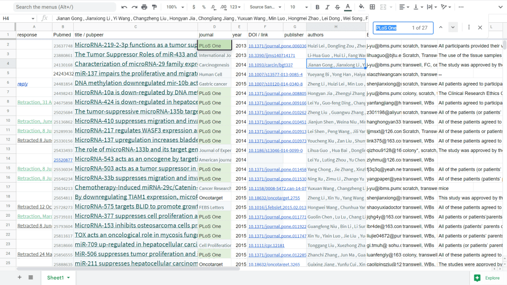 Anyway, this studio was fond of PLoS One as an outlet (occasionally branching out to OncoTarget, and then further afield to Journal of Cellular and Molecular Medicine), though a recent shift in PLoS policy to reduced tolerance for fabrication brought the Scythe of Retraction cutting swathes through that back-catalogue. Instances are still emerging from the woodwork, meaning that my list is substantially embiggened from Dr Bik’s: 56 65 entries so far (nearly half in PLoS One), with 15 retractions.