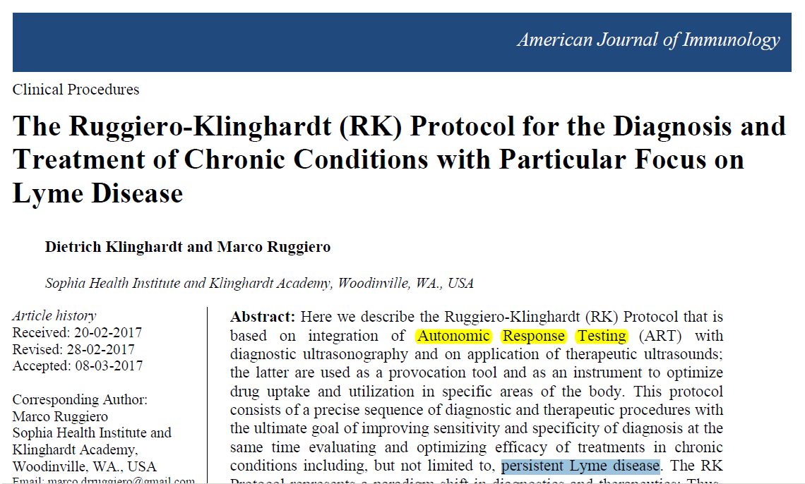 And “DNA Connexions”, whom I encountered in the context of Klinghardt – they provide Science Confirmation for Klinghardt’s voodoo diagnoses of Chronic Lyme. Which can be treated with Rerum, of course.