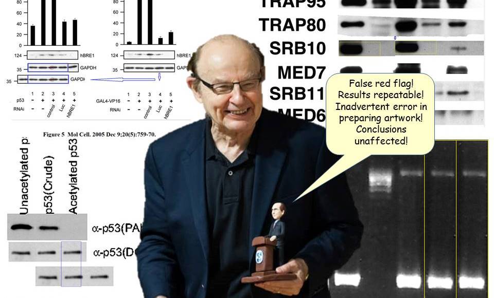 The usual, two fake gel figures. But there is more, because Columbia’s cancer research professor Wei Gu has a PubPeer record of his own (caveat: due to the nature of Chinese names, the list includes other people named Wei Gu). This for example is by our Gu, an old paper with his postdoctoral mentor Roeder: