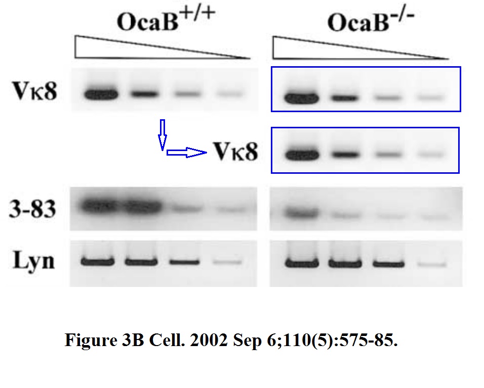 Rafael Casellas , Mila Jankovic , Gesa Meyer , Anna Gazumyan , Yan Luo , Robert G. Roeder , Michel C. Nussenzweig OcaB is required for normal transcription and V(D)J recombination of a subset of immunoglobulin kappa genes Cell (2002) doi: 10.1016/s0092-8674(02)00911-x