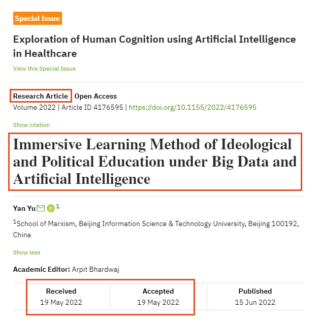The publication of manuscripts on the ideological and political education of the Chinese Communist Party was in itself proof of madness, but I found even stronger evidence that editorial oversight in some Hindawi journals does not exist at all, and that guest editors can do whatever they want.