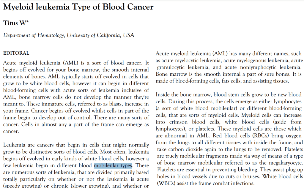 Hinglish for cell phone is “mobile”, hence reverse double Hinglish for cellular = “mobileular”. Quite a giveaway for the origins of this drivel, and scanning for this term dredges up all sorts of dreck, including a commentary in J Spine Neurosurg Vol: 11 Issue: 2 – “Role of Cell Sensitization in Cancer Therapy.” It begins with: “Cancer is one of the most popular illnesses affecting humans during the globe.” Author is of course fictional, from the imaginary Virginia University. Where do these people find the time, and indeed gullible customers?