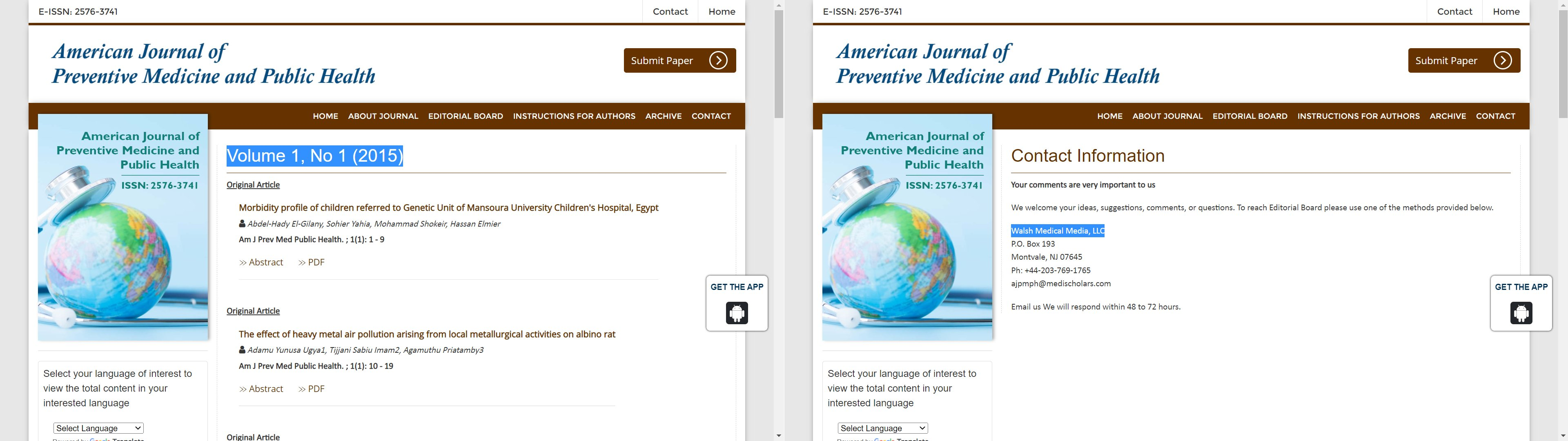 But somehow and somewhen, OMICS acquired ownership, and embedded the journal within their ‘Walsh Medical Media‘ fuckpuppet. Deeming 2017 to be too recent, the new owners retconned a fake 2015 Inaugural Issue of AJPMPH, revising the publication date on papers accordingly – almost as if the ‘integrity of the academic record’ means nothing to them. EVERYTHING FROM OMICS IS A LIE. The new owners stopped assigning DOIs (they are too busy frauding to spare time for such fripperies as ‘unique permanent identifiers’), and made no arrangement to redirect the old DOIs, leaving them pointing vaguely off into the distance.