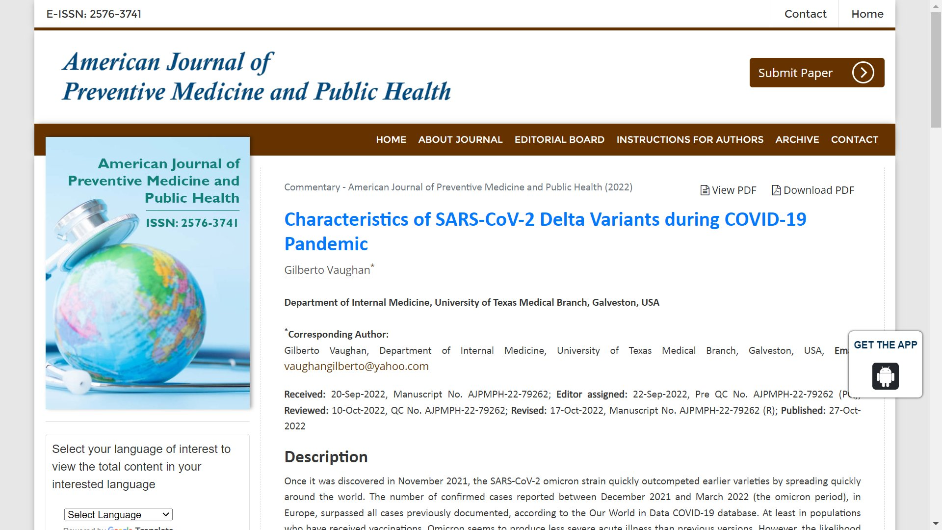 So here is a recent AJPMPH paper, attributed to “Gilberto Vaughan”, at the Galveston campus of “University of Texas Medical Service”, claiming to have researched COVID sequelae in the UK. Gilberto doesn’t exist. The paper is surprisingly coherent for the work of a purely fictional author, but its unlooked-for lucidity is explained when we discover that it was copied from a Lancet study.
