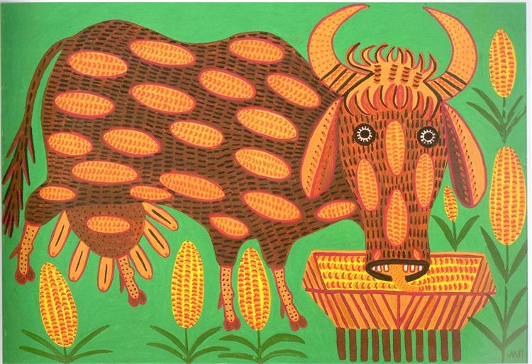 “A Cow Like That Gives 5,000 Liters a Day” by Maria Primachenko (1978)