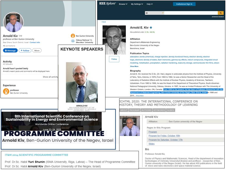 However, Kiv “official” affiliation on his LinkedIn and IEEE profiles and on the many conferences which he organises or speaks at, in Ukraine and abroad, is: Professor at the Ben Gurion University of Negev, Israel. Impressive!