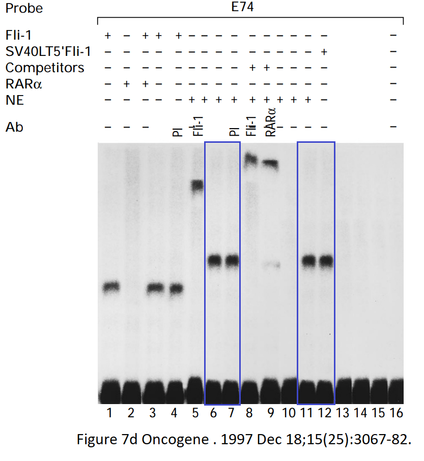 “The composite Figure 5 was generated in 2010 and consists of two images of large-scale electromobility shift gels and a bottom panel A. Each of these single panels had to be reduced in size and resolution prior to figure submission.