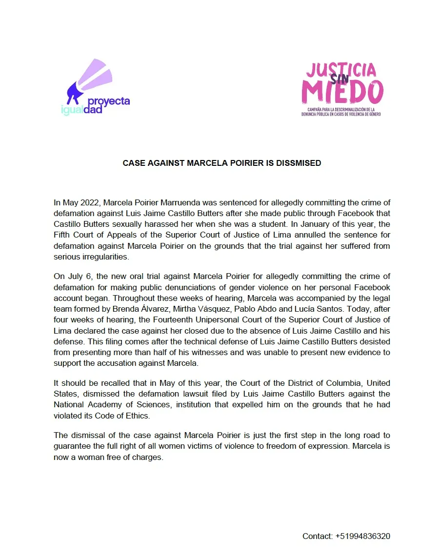 Michael Balterreported on 7 August 2023: “This morning in Lima, Peru, a judge dismissed a long-running defamation case by archaeologist Luis Jaime Castillo Butters against Peruvian anthropologist Marcela Poirier, whose only crime was to expose his misconduct. The dismissal comes on the heels of Castillo’s loss in a defamation suit he had filed in U.S. federal court against the National Academy of Sciences and its president, Marcia McNutt, after the NAS kicked him out after its own investigation into his behavior. […] The judge in the Lima suit dismissed the case with prejudice (meaning it cannot be refiled) after Castillo and his attorney failed to appear in court.” Read about the backstory on Balter’s blog and my summaries here.