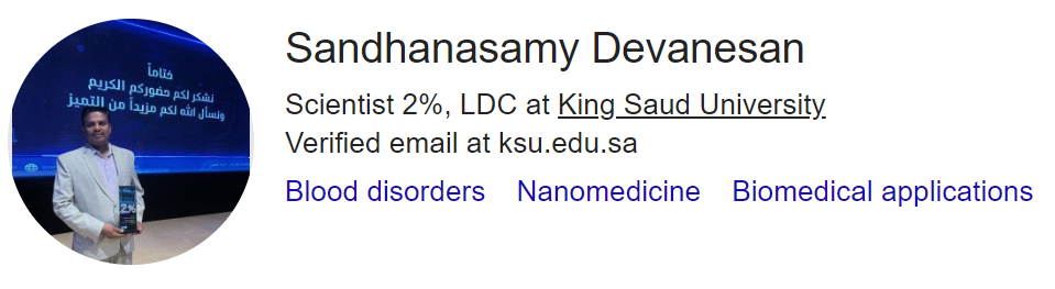 Sandhanasamy Devanesan (another “Scientist 2%” at King Saud University) responds: