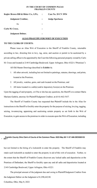 And Drama ensues! Don’t worry, this is leading back to Croce’s lawsuit. I draw upon the documents in the case, including a draft Auction Prospectus prepared by Sotheby’s for the Franklin County Clerk of the Court of Common Pleas.