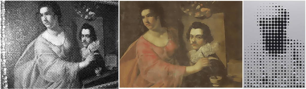 This Allegory of Paintingfrom a private collection” is by Virginia Vezzi, and therefore worth $800,000… though “this estimate is pending further research”, because according to the Wikimedia entry, the work is “doubtfully attributed” and probably worthless. Is it wrong of me to imagine the half-tone version with the dots replaced with googly eyes?