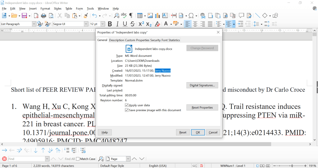 Carlo Maria Croce is a living legend. This old Italian man in USA may be one of the worst, if not the worst cancer researcher of all times. He has 14 retractions and way over a hundred fraudulent papers on PubPeer, anyone seen co-authoring papers with Croce can be safely assumed a fellow fraudster. And some were in fact proven as such, like his countryman Alfredo Fusco. Croce sued New York Times and his critics, sent lawyers to intimidate journal editors (yet failed to achieve anything but costs to all involved), and still, he remains employed on a fat salary at a the Ohio State University (OSU), which placed the research misconduct blame on some women in Croce’s circles in order to protect the don.