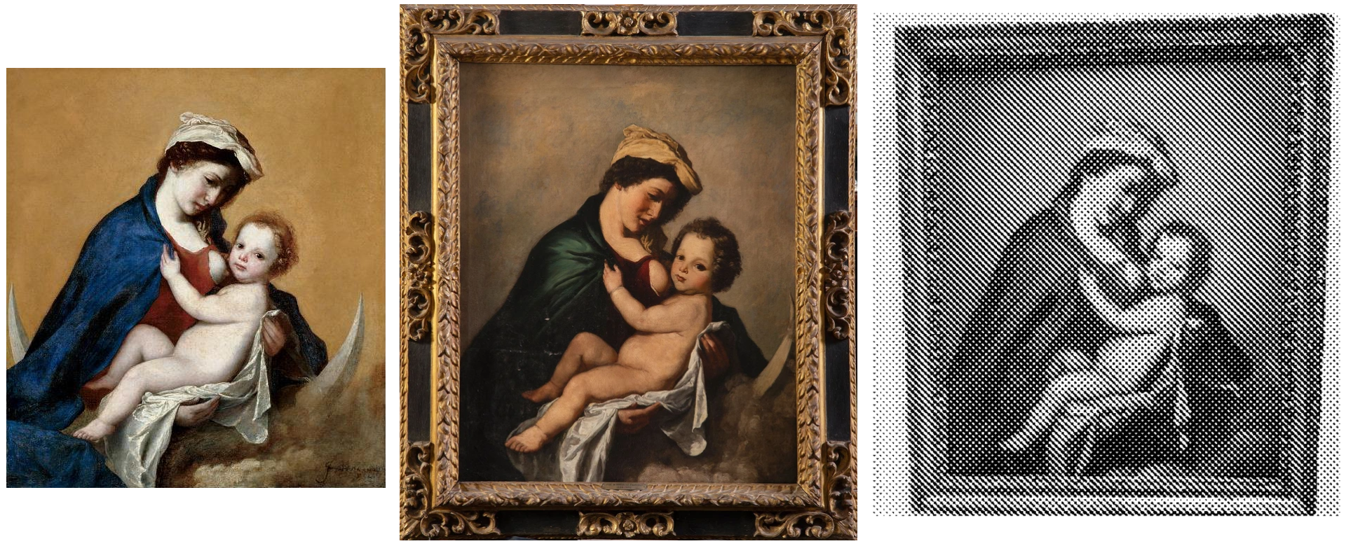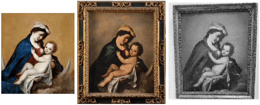 One of these versions of Jusepe de Ribera’s “Madonna & Child” is in the Ringling Museum, one was auctioned as “Follower of Ribera” and one is a treasure of the Croce Collection; and in this crazy mixed-up world, who is to say which is the authentic original and which are cheap knock-offs? Or which is worth $150,000-$200,000? Only iron self-control prevents me from alternating the images in a strobing, jerking animation.