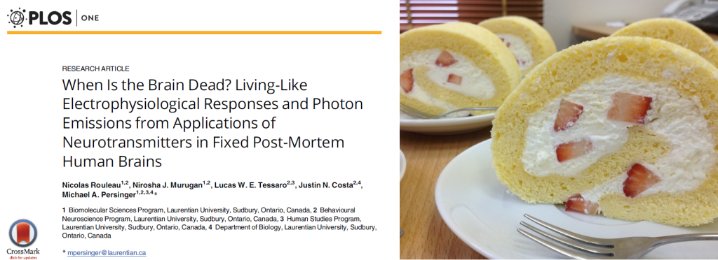 Evidently even dead pickled brain tissue emits biophotons when steeped in neurotransmitters, except “necrophotons” would be a better name for them, if you don’t mind sounding like a speech bubble in a Jodorowsky graphic novel. It displays detectable gamma- and theta-wave activity, retaining a dim flickering level of consciousness, memory and awareness of its status as a slice of brain in a jar of formalin.*** I watched that movie and it did not end well.