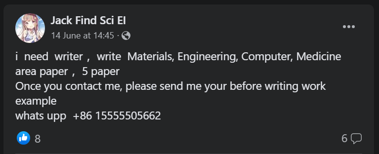 Jack Ben also requests help publishing specialised papers, presumably if there is no suitable journal candidate in their current list of cooperative journals. On 25 February 2022 he provided the title of one such paper, “Research on Laser Ultrasonic Propagation Characteristics and Quantitative Detection of Delamination of Carbon Fiber Composite”.