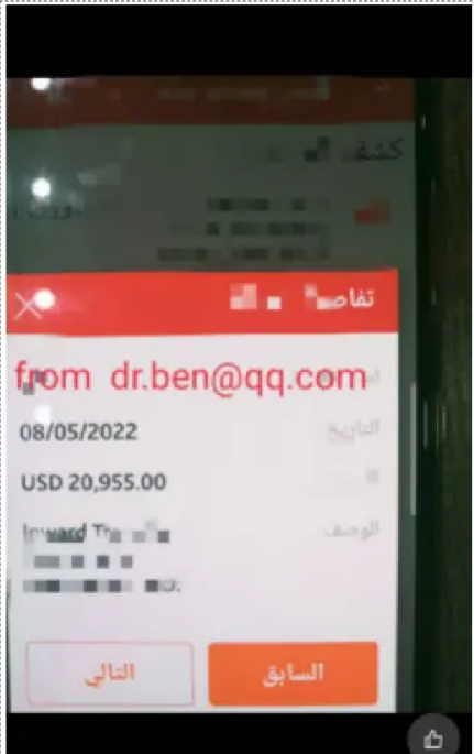 The recipient of the financial transactions shown above is تمجيد لتحكيم البحث العلمي, which translates as ‘Glorification [Tamjeed] of scientific research arbitration’