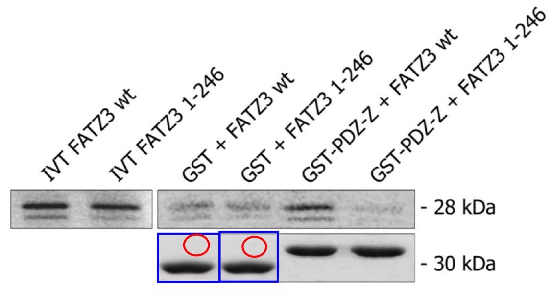 In Fig 2D, when levels are adjusted to visualize background, the 4th and 5th (“GST” and “-”) Wb: anti-GST panels appear similar.