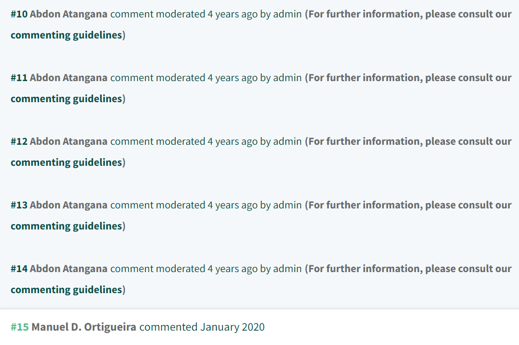 Atangana is also gone from the editors of Alexandria Engineering Journal. That may be related to the Special Issue he edited there, on “New trends of numerical and analytical methods for engineering problems“; and a particular paper “A bibliometric analysis of Atangana-Baleanu operators in fractional calculus“, now retracted because the nominal author ‘Alexander Templeton’ doesn’t exist. We are left to wonder who would use a false name and a burner email account to write literature reviews, so as to receive no credit for it… apart from pseudonymous PubPeer contributors and guest-bloggers at For Better Science, of course.
