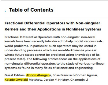 It may be that the same conspiracy robbed Atangana of his Editorial-Board status at Results in Physics. On the other hand, he remains persona grata at Chaos, Solitons & Fractals (despite the disappearance of Baleanu from the latter).