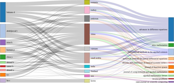 A ribbon plot emphasises the importance of ADE in Baleanu’s output (and Abdeljawad’s). Perhaps this answers the questions that Catanzaro didn’t ask in Science. These Highly-Cited Mathematicians all have multiple affiliations, hence the Country column in the plot.